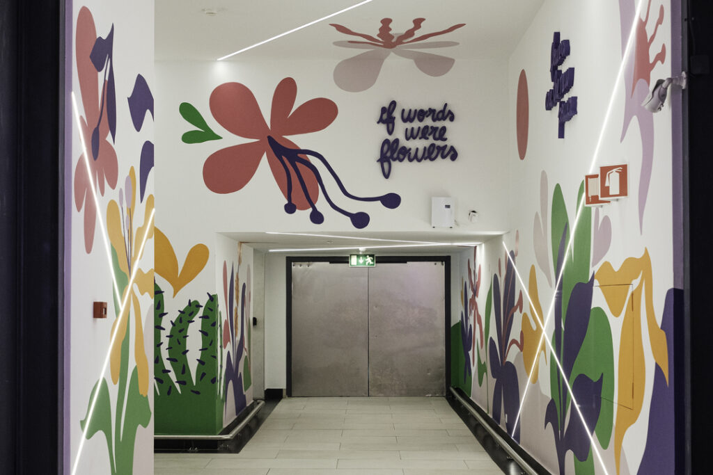 Desenvolvido em exclusivo para o Alegro Alfragide, If Words Were Flowers, de Catarina Oscariña, nasce como uma intervenção artística que cruza ilustração, palavra e espaço.Partindo de uma linguagem visual orgânica e profundamente sensível, a artista constrói um universo onde natureza e expressão verbal se encontram num equilíbrio delicado.